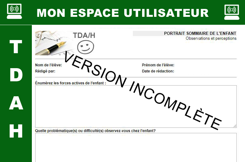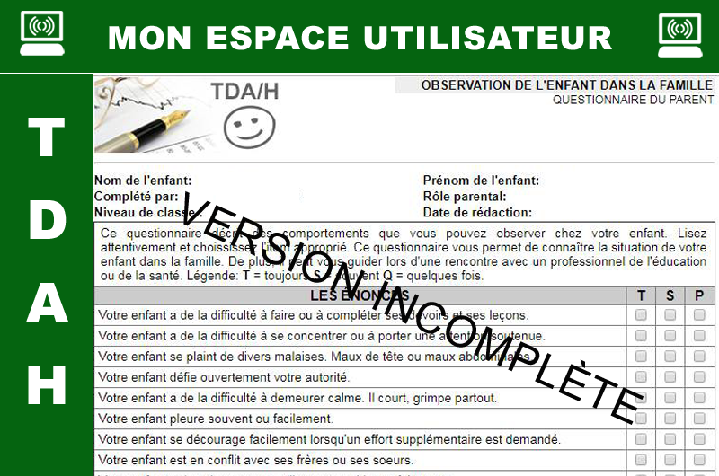 Nous devons comme parents, comme agent scolaire prendre des approches différenciées pour favoriser la réussite scolaire d'un enfant ou d'un élève avec un TDAH. Nous avons développé sur tdahapp.com un questionnaire sur le TDAH qui offre une analyse instantanée avec des résultats valables à un plan de traitement. La compilation des données recueillies porte sur des composantes comportementales de l'environnement socio-éducatif. Hautement novateur et développé par une équipe de professionnels en intervention de première ligne en milieu scolaire, ce questionnaire sur le TDAH s'inscrit dans une perspective synergique visant à stimuler l'utilisation de la technologie éducative afin de faciliter la recherche de solutions et de moyens d'intervention auprès des élèves, des enfants présentant un trouble déficitaire de l’attention. Vous êtes parents et vous désirez être plus outillé et informé sur le trouble déficitaire de l’attention avec ou sans hyperactivité, le questionnaire sur le TDAH sur tdahapp.com s’adresse à vous. Pour un enfant, un adolescent la facilité à se concentrer et une attention soutenue en classe demeurent des incontournables à la réussite éducative. Ce questionnaire sur le TDAH permet de vérifier et de valider la constance de diverses structures du comportement de l'enfant, adolescent présentant un trouble déficitaire de l'attention avec ou sans hyperactivité. Utilisé périodiquement, cet outil clinique d'évaluation et de dépistage ne doit pas être un simple exercice de catégorisation pour établir un diagnostic. Par des observations directes, une analyse des résultats et des hypothèses soulevées par l'évaluation, les parents pourront orienter efficacement le plan de traitement de leur enfant présentant un TDAH. Le questionnaire d’évaluation de la version du parent contient 58 questions. Simple à compléter l'analyse des résultats se fait instantanément par un seul clic. La compilation des données recueillies porte sur des composantes sur le trouble déficitaire de l’attention avec ou sans hyperactivité et des composantes comportementales. Le dépistage précoce du TDAH chez l’enfant ou l’adolescent est essentiel dans l’élaboration et l’orientation d’un plan de traitement qui suggère des stratégies préventives. Le questionnaire sur le TDAH a été conçu et destiné à des fins variées : A) Recueillir des données qui permettront de faire un premier dépistage afin d'orienter le plan de traitement de l’enfant, l’adolescent. B) Pour dresser un profil comportemental favorable avec des stratégies d’intervention préventives spécifiquement liées au TDAH. Le questionnaire sur le TDAH version parent demeure un outil complémentaire à d’autres mesures et ainsi assurer une analyse complète dans diverses composantes comportementales reliées aux symptômes sur le TDAH. L’analyse des résultats doit conduire à des interventions réalistes, adaptées et répondant aux besoins de votre enfant ou de votre adolescent. |